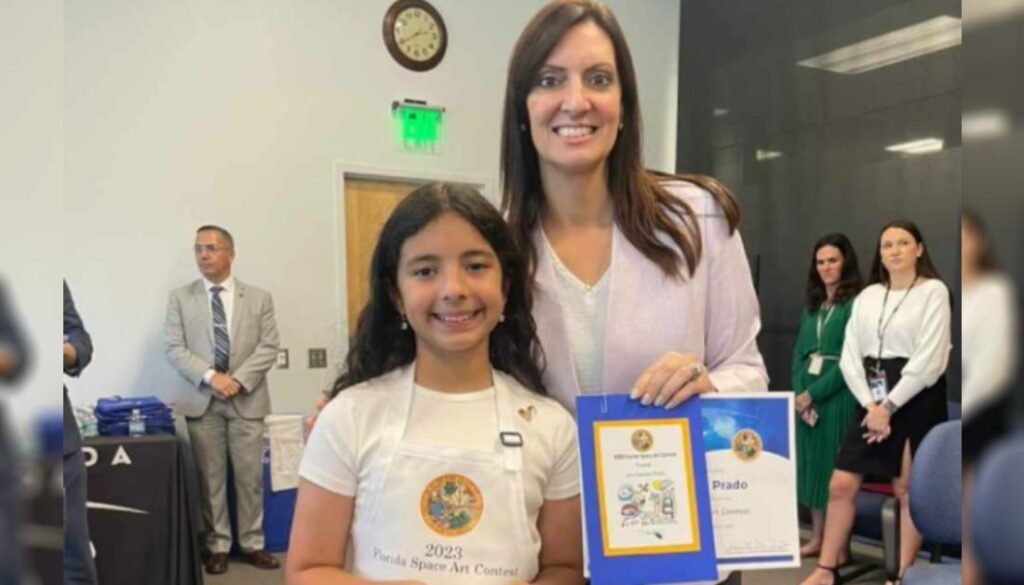 Junto a otros finalistas, la pequeña recibió el reconocimiento por parte de Britto y la vicegobernadora de Florida, Jeanette Núñez, en la sede de Space Florida, cerca del Centro Espacial Kennedy.
