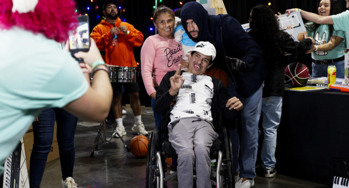 Bad Bunny, vestido con un abrigo negro, pantalones vaqueros y zapatillas, se acercó primero a los niños con discapacidades especiales, compartiendo abrazos y regalos especiales, incluyendo la entrega de un canasto de baloncesto y una pelota a uno de ellos, a quien el propio artista cargó en sus brazos.