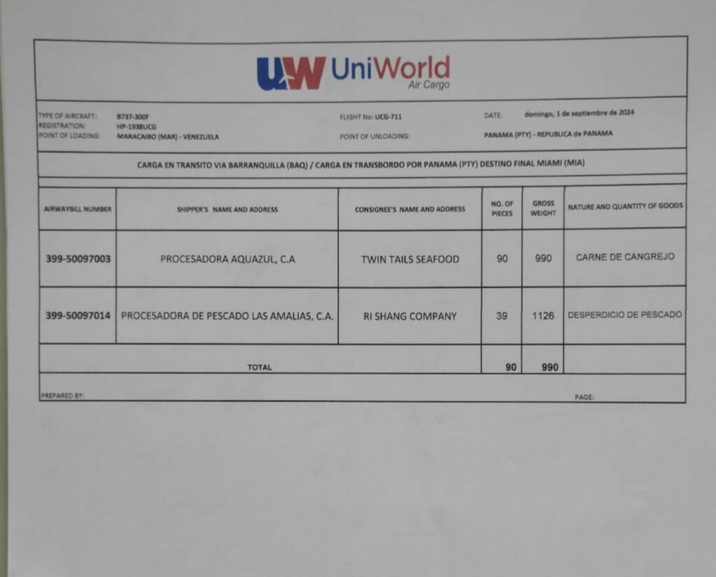 Asimismo, comentan que los manifiestos de carga revelan que cada vuelo transporta únicamente 3,000 kilos (3 toneladas) de buche de corvina, una cantidad insuficiente para que la aerolínea obtenga beneficios económicos, situación que ha generado sospecha entre quienes hacen vida en el aeropuerto. “Ninguna aerolínea puede operar con una carga tan limitada sin incurrir en pérdidas financieras considerables. Esta situación es altamente sospechosa, especialmente dado que la aerolínea debe volar a través de Curazao para evitar sanciones, lo que sugiere una posible conexión oculta con el comercio ilícito que compensa las pérdidas”, manifestó la fuente, mostrando además indignación y descontento por lo ocurrido.