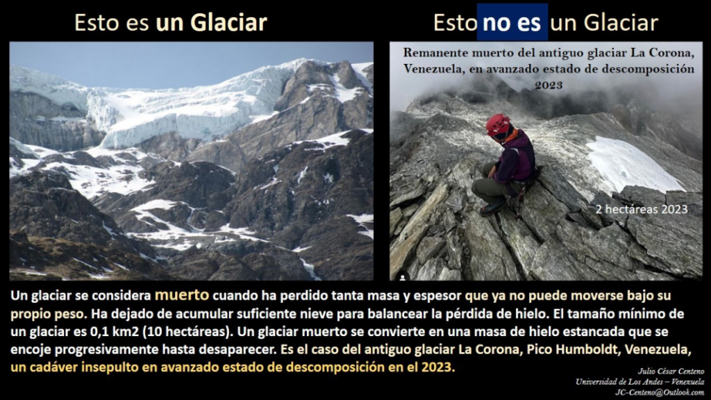 Venezuela se ha convertido en ejemplo de las consecuencias del cambio climático global. De los cinco glaciares que un día formaron parte de la identidad de los páramos del estado Mérida, hoy no queda ninguno. Recientemente se conoció que el último, localizado en lo alto del pico Humboldt del Parque Nacional Sierra Nevada, se convirtió en una masa de hielo tan pequeña que ya no puede ser considerada como un glaciar, de acuerdo con la Iniciativa Internacional sobre el Clima Criosférico (ICCI), una influyente organización de defensa científica.