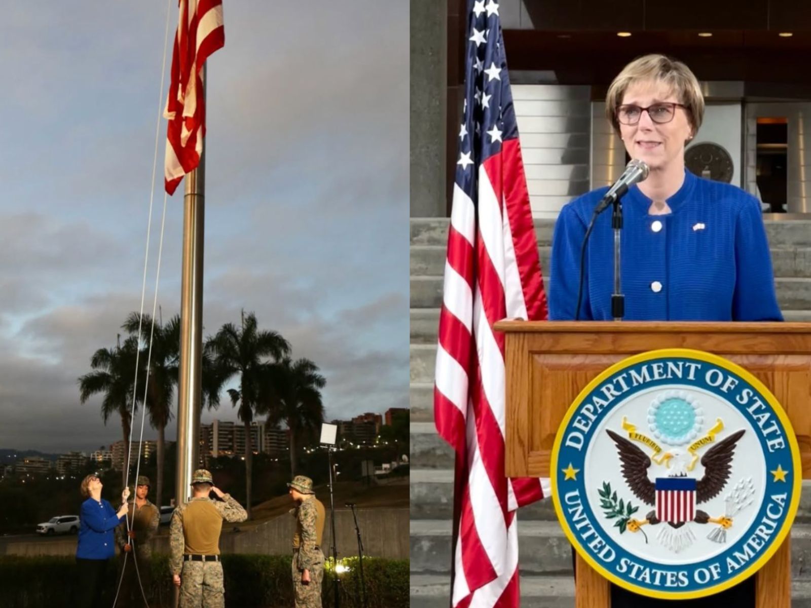 Este sábado 14 de marzo de 2026, la embajada de Estados Unidos en Caracas volvió a izar su bandera después de siete años. La ceremonia estuvo encabezada por Laura Dogu, encargada de negocios estadounidense, quien destacó que la bandera fue levantada a la misma hora exacta en que fue retirada en 2019.