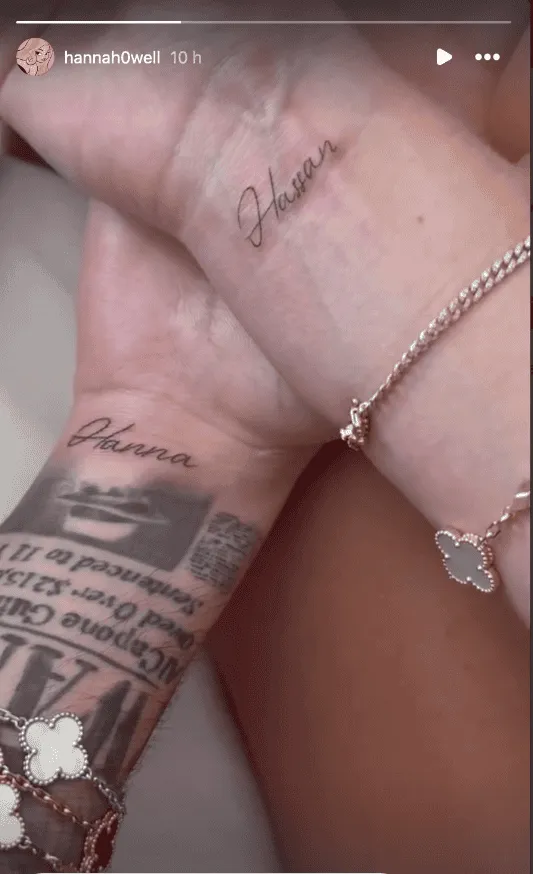 Por su parte, el cantante inmortalizó el nombre de Hanna en su mano. Aunque el dibujo en tinta de la Doble P se realizaría en junio, la pareja comenzó a salir públicamente en julio durante un concierto que él dio en Estados Unidos.