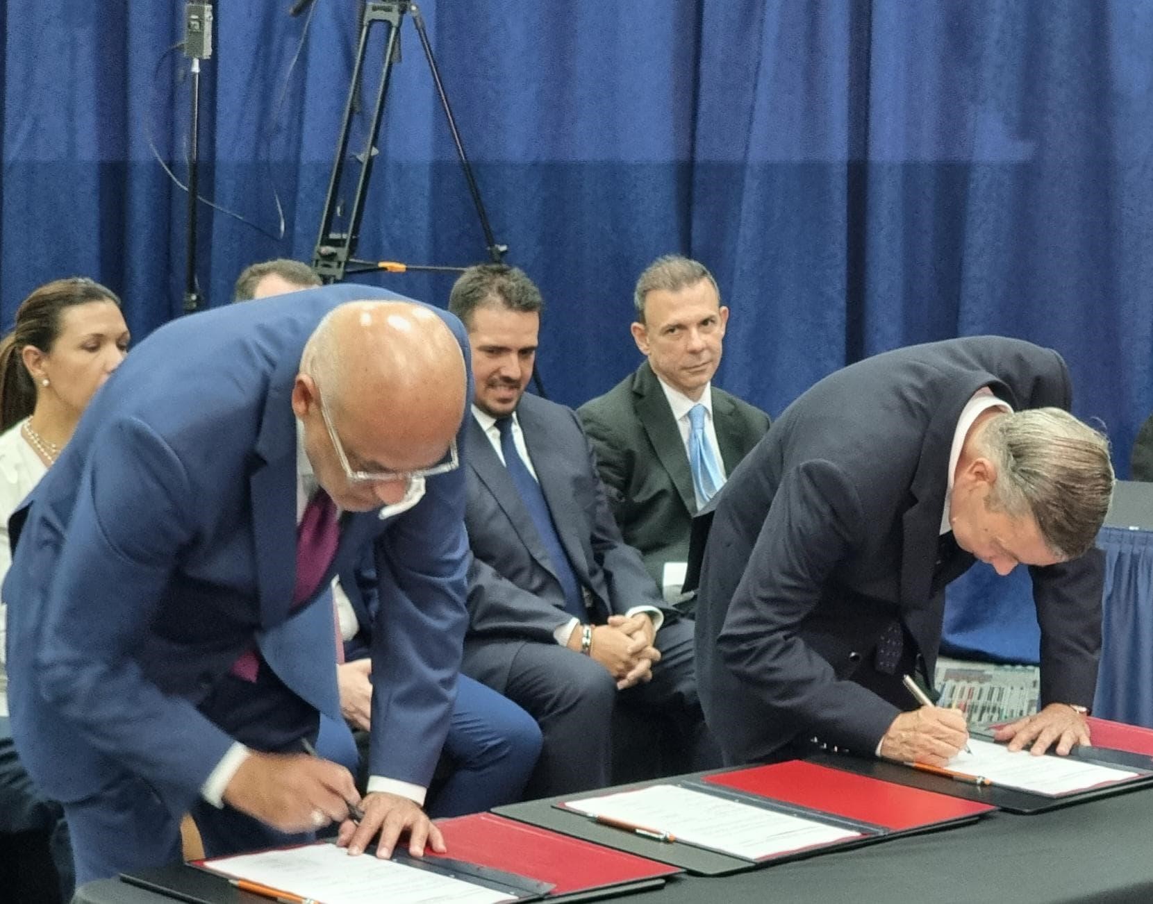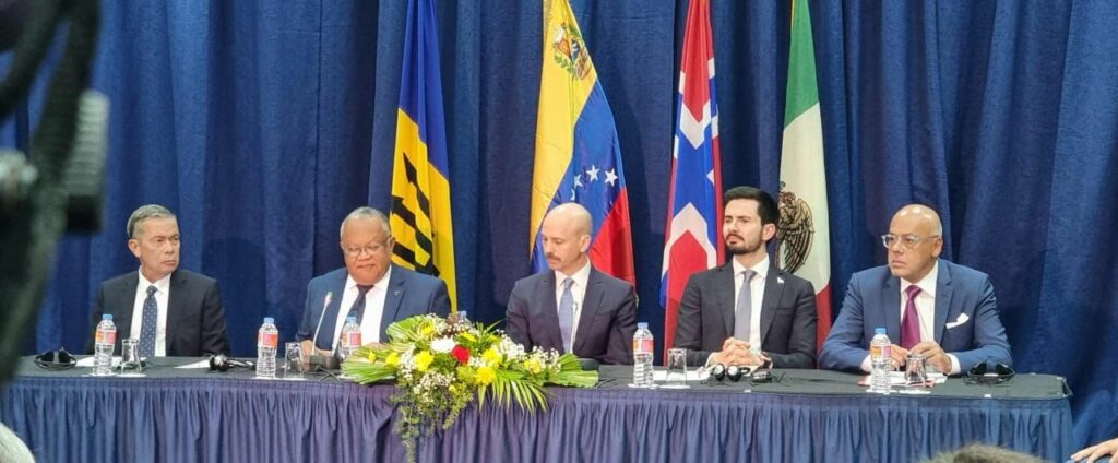 Tras una larga jornada que inició este 17 de octubre, el presidente del Parlamento venezolano, Jorge Rodríguez, y el exalcalde caraqueño Gerardo Blyde, en nombre del Gobierno y la oposición, respectivamente, firmaron las tres copias del pacto, del que no se informaron detalles inmediatamente, y de otro acuerdo parcial referido a la «protección de intereses vitales de la nación».